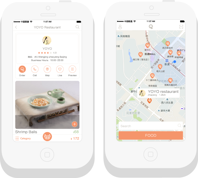 Users can check the surrounding restaurants location on phone booking, paying, pre-setting time and table seats.