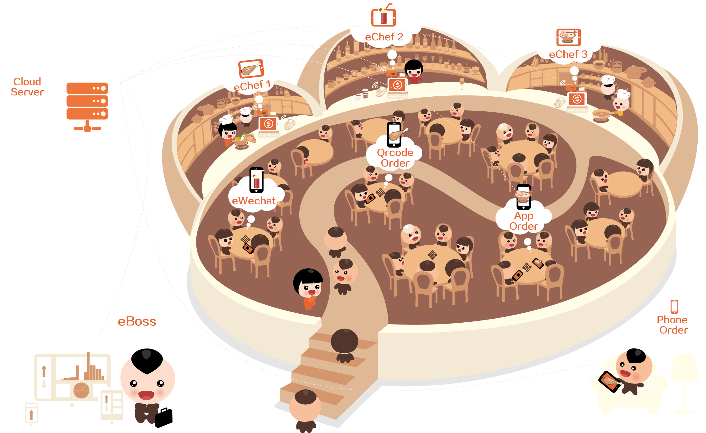 In the We Media era, however small the restaurant is, it can have its own brand. EMenu not only helps the merchants present their brands, but help them establish public accounts to absorb fans, with VIP managing the platform, to establish We Media. Meanwhile, the customers can share and promote on WeChat, Weibo, Facebook, Twitter, Instagram and other social media platforms. “Being kidnapped” group buying rejected!