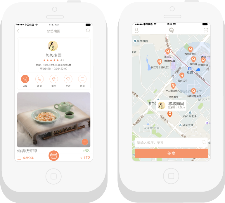 用户可通过手机查看周边餐厅位置,可进行预先点餐、支付预订时间以及桌位等操作