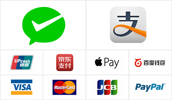 可支持微信支付、支付宝支付、银联支付、苹果支付、百度支付、PayPal等线上扫码支付方式。